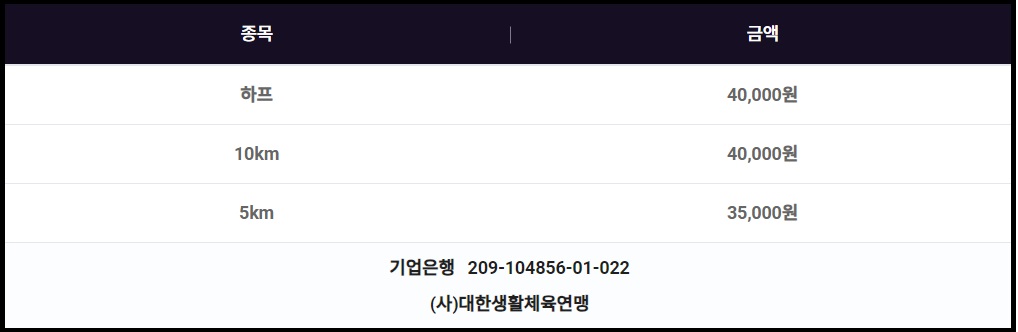 -기록측정 : 하프,10km(칩사용) / 5km(칩사용 안함)