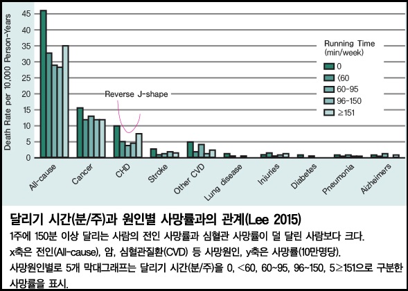 또한 다른 연구 결과에서는 평균적으로 달리기 선수들의 조기 사망 위험이 25~40% 감소하고, 평균 수명이 약 3년 정도 긴 것이 확인되고 있습니다.